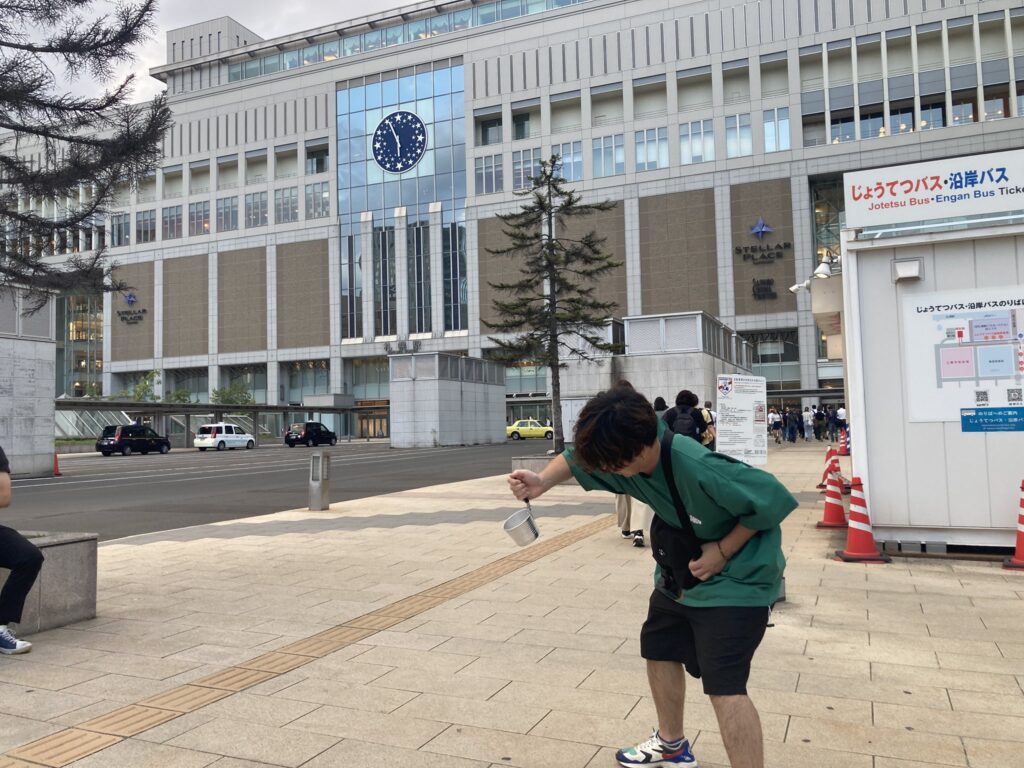 今週の湯切り↑ 札幌駅前で。視線が集まっていました。関係ないです。