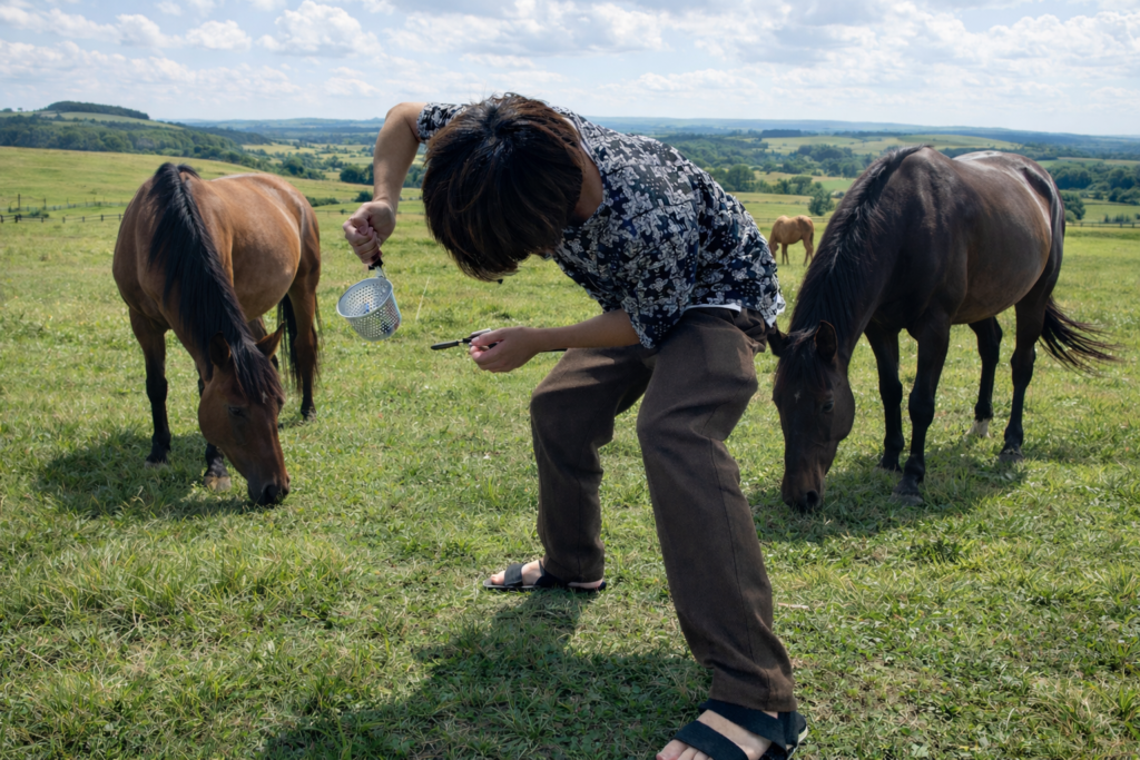 午年ですから。お馬さんと湯切り。※AIがつくりました