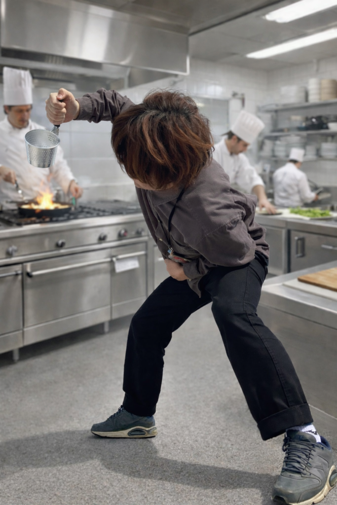 ↑今日の湯切り。厨房ではこんな感じで湯切りしてるんですよ。