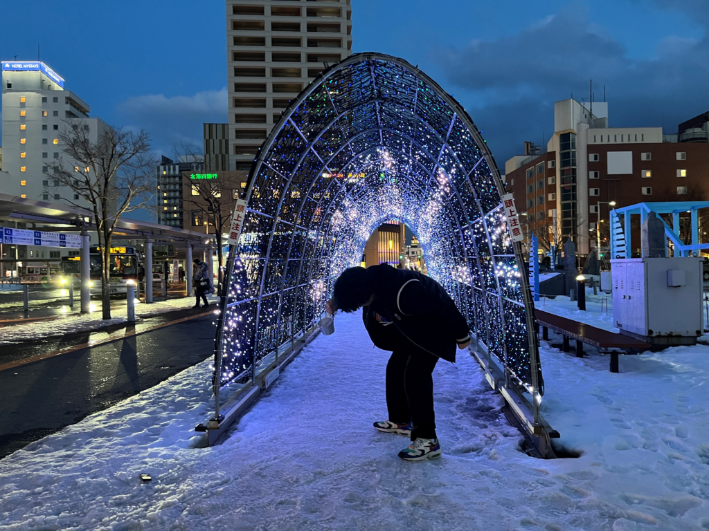 今日の湯切りは映えな感じですね。イルミネーションと一緒に。