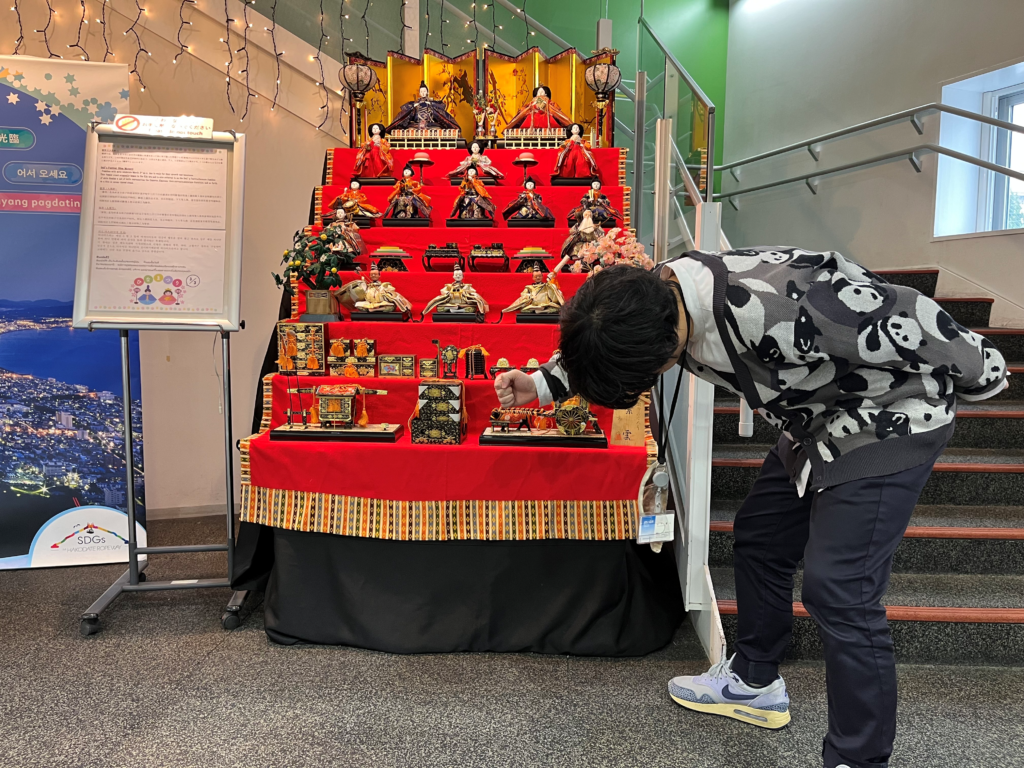 ↑今日の湯切り。ひな人形の横で。